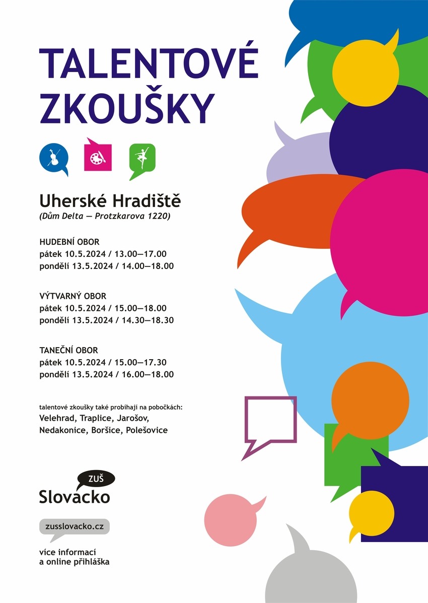 Talent dřímá v každém z nás, ale neprobuzený a nerozvíjený v nás také může prospat celý život. Žáky přijímáme na základě talentových zkoušek. Nemusíte se bát, vše probíhá hravou a vstřícnou formou. Podívejte se, kdy máme termíny talentových zkoušek v Uherském Hradišti a na pobočkách školy, můžete také rovnou vyplnit online přihlášku.