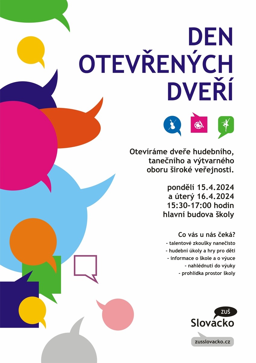 otevíráme dveře hudebního, tanečního a výtvarného oboru široké veřejnosti.