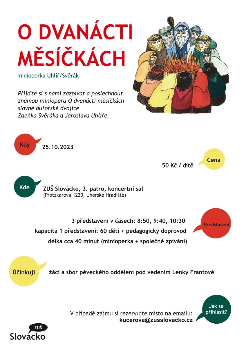 V brzké době přivítáme u nás ve škole děti z mateřských škol, které si s námi přijdou zazpívat a poslechnout si známou minioperu O dvanácti měsíčkách slavné autorské dvojice Zdeňka Svěráka a Jaroslava Uhlíře.