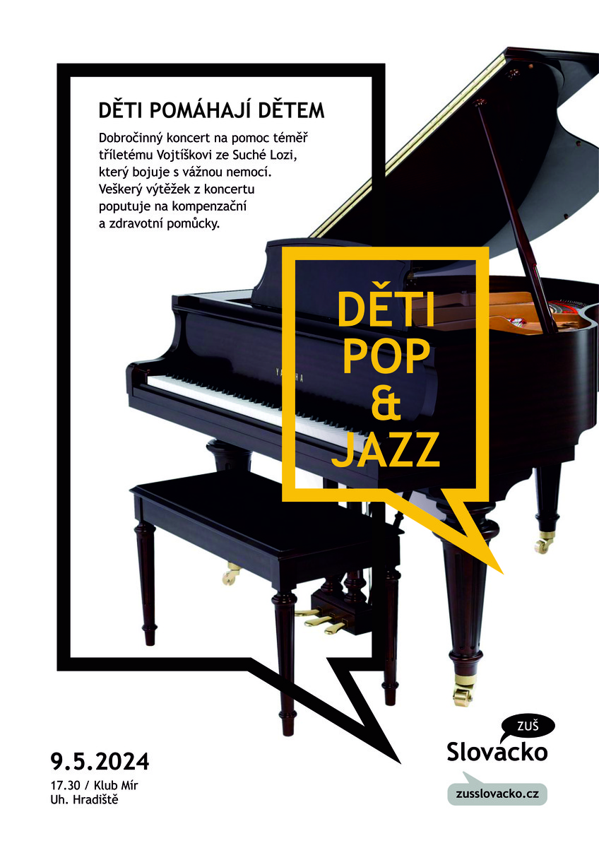 S populárním programem v duchu jazzu a pop-music vystoupí sólisté a soubory ZUŠ Slovácko. Výtěžek z akce poputuje téměř tříletému Vojtíškovi ze Suché Lozi, které bojuje s vážnou nemocí. Jeho zdravotní stav vyžaduje neustálou péči jeho maminky Lucie.