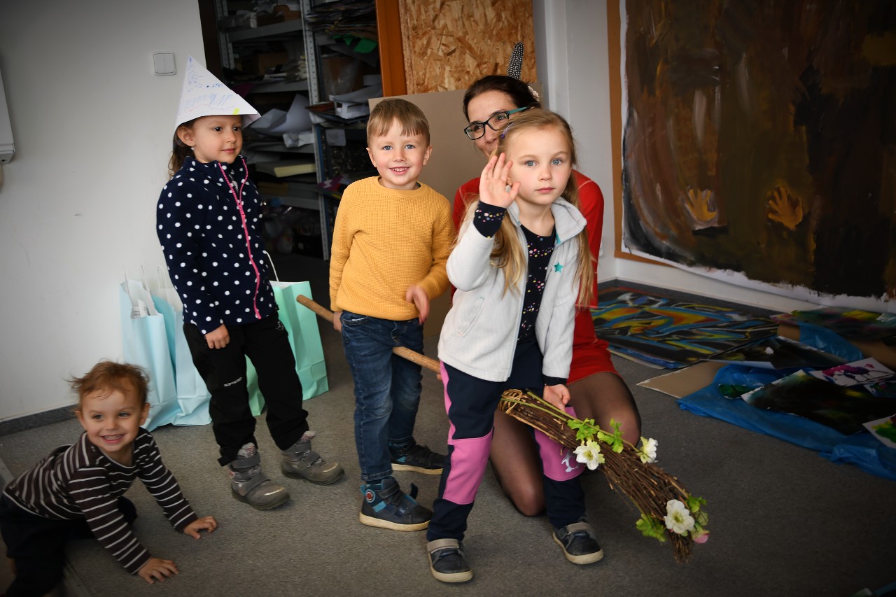 V úterní dopoledne se děti ze školek ocitly "v říši pohádek". Po učebnách ZUŠ Slovácko je provázel Večerníček a společně se školkáčky, kterých se tu za celé dopoledne sešlo téměř 150, rozkrývali řadu zajímavách úkolů.